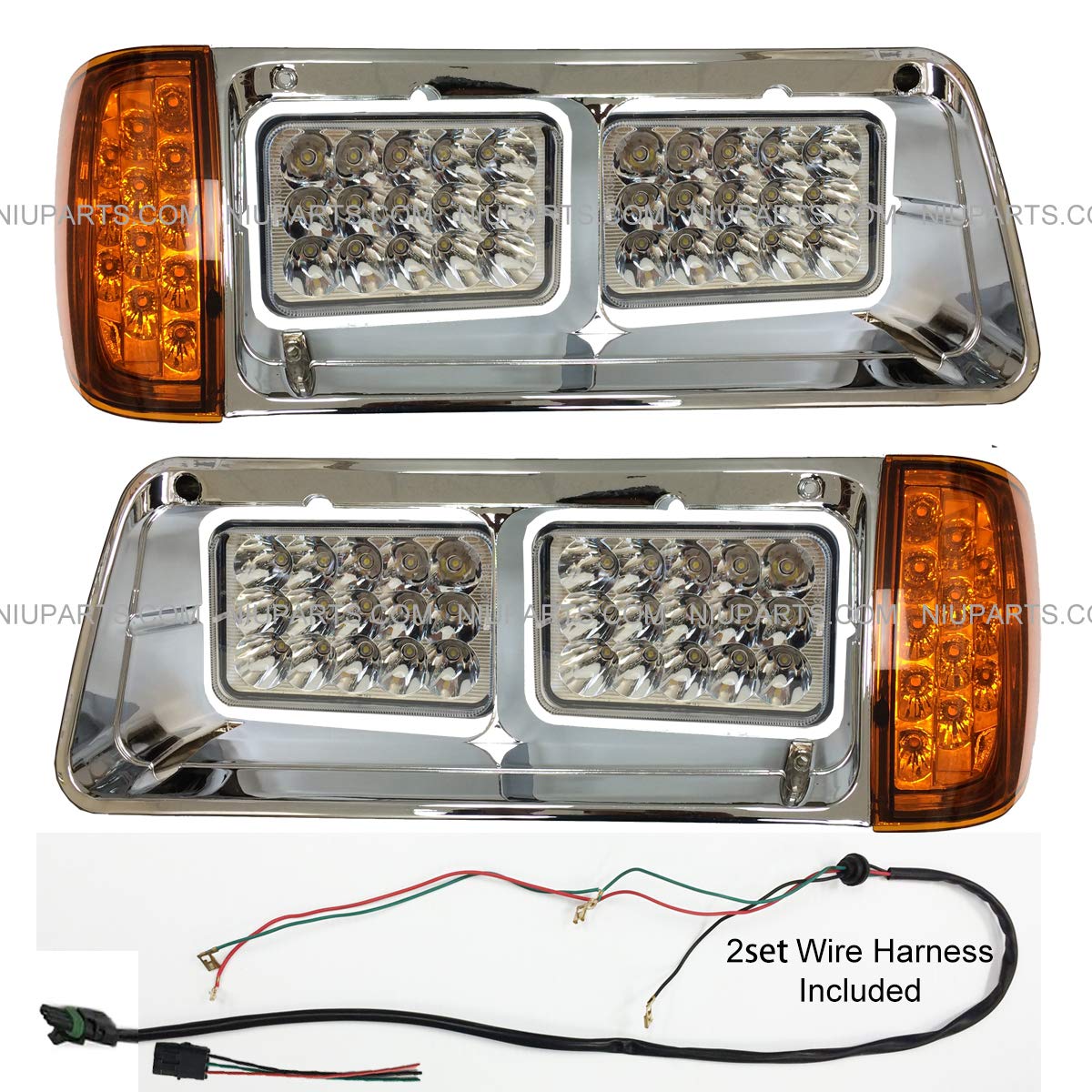 Led Headlight With Amber Led Turn Signal Light And Chrome Bezel Driver And Passenger Side Fit 1993 2007 Freightliner Fld