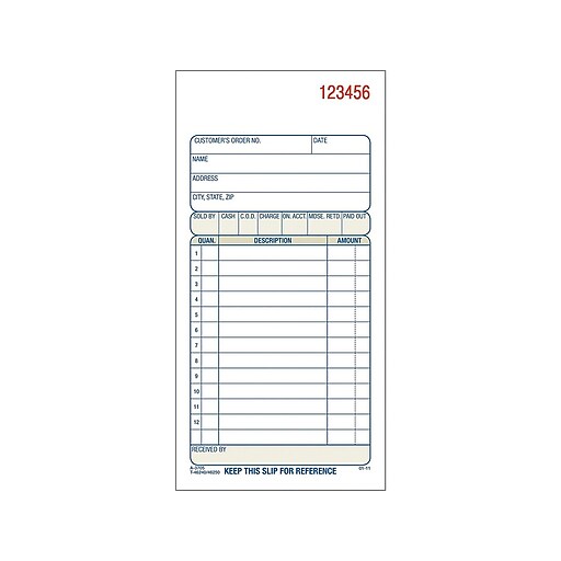3 part sales receipt books. It includes a 3 part design with white canary and pink copies. This convenient book is designed to keep track of sales orders for you and your customers. Blank space in the header leaves room for a company stamp. Keep your businesss orders organized with this adams tc4705 3 part blue and white carbonless sales order book with 50 sheets.