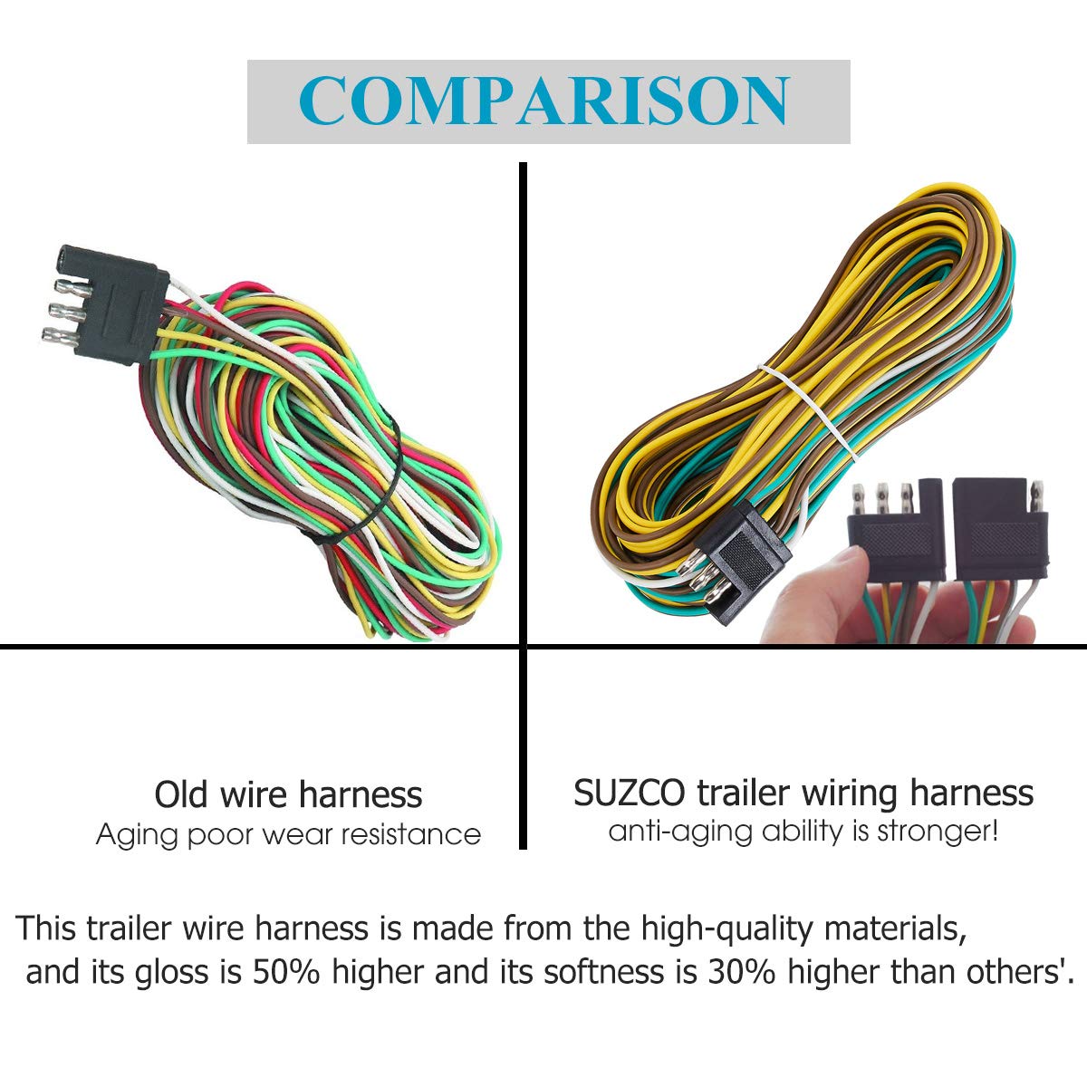 Suzco 25 Foot 4 Wire 4 Flat Trailer Light Wiring Harness Extension Kit 4 Way Plug 4 Pin Male Female Extension Connector Wishbone Style With 18