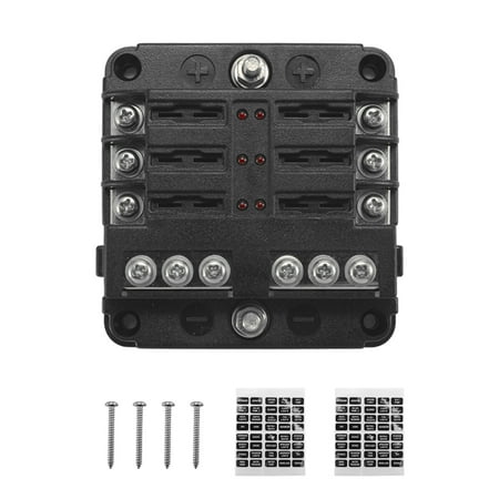 Wupp St Blade Fuse Block With Led Warning Indicator Damp Proof Cover 6 Circuits With Negative Bus Fuse Box For Car Boat Marine Rv Truck Dc 12 24v
