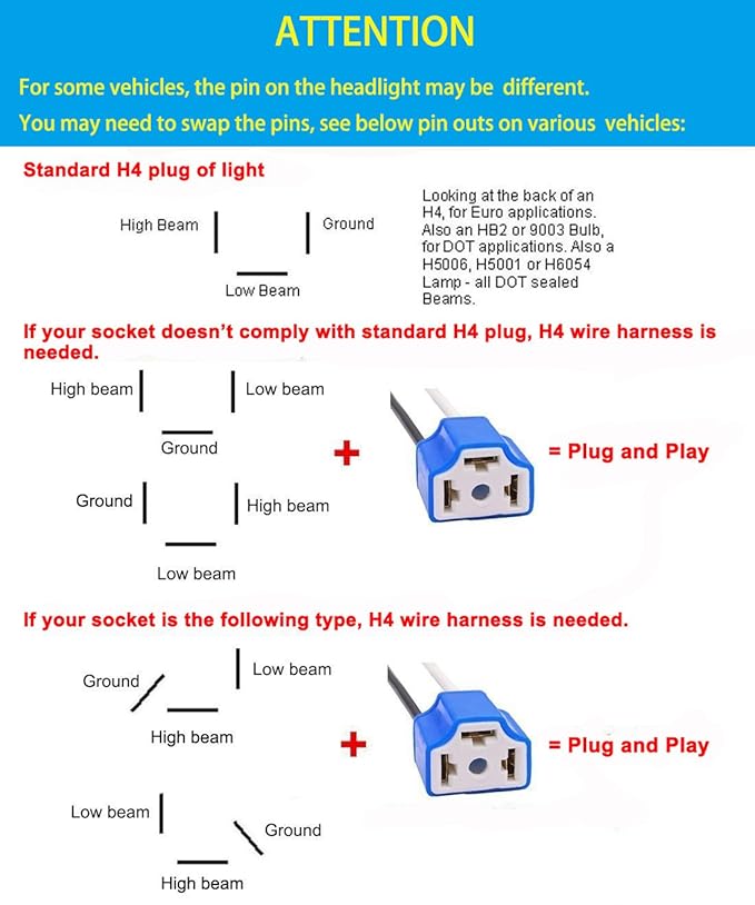 Details About H4 9003 Hb2 Headlight Headlamp Bulb Socket Adapter Plug Wiring 3 Wire Pigtail
