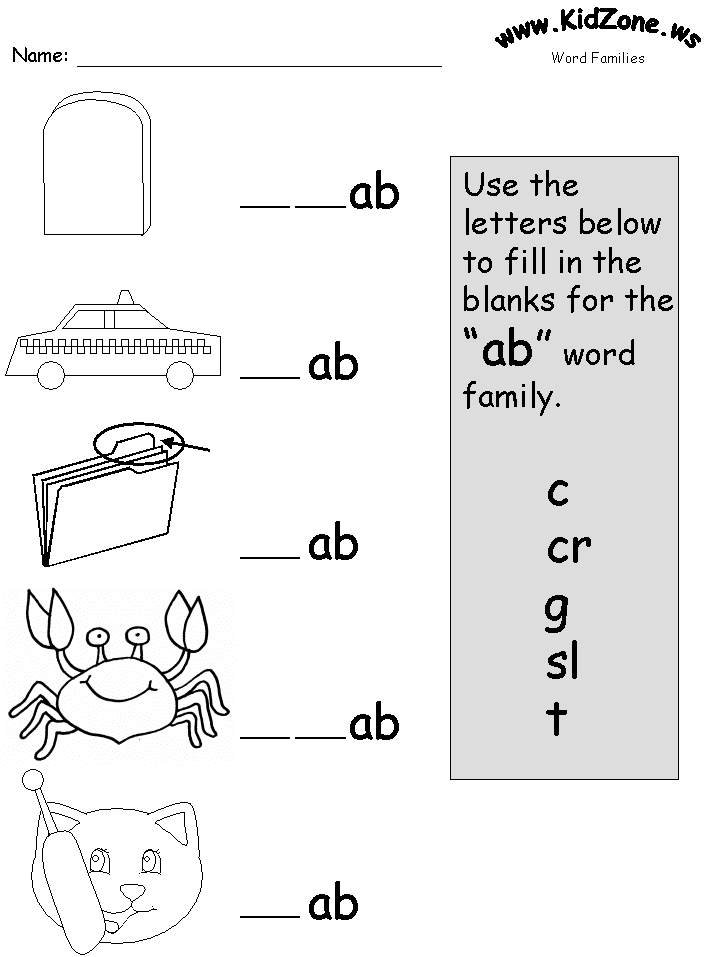 Ab Word Family Worksheets