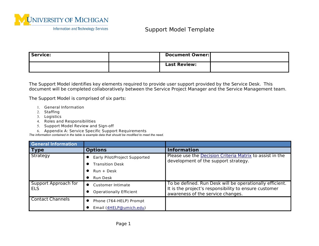 Application Support Model Template