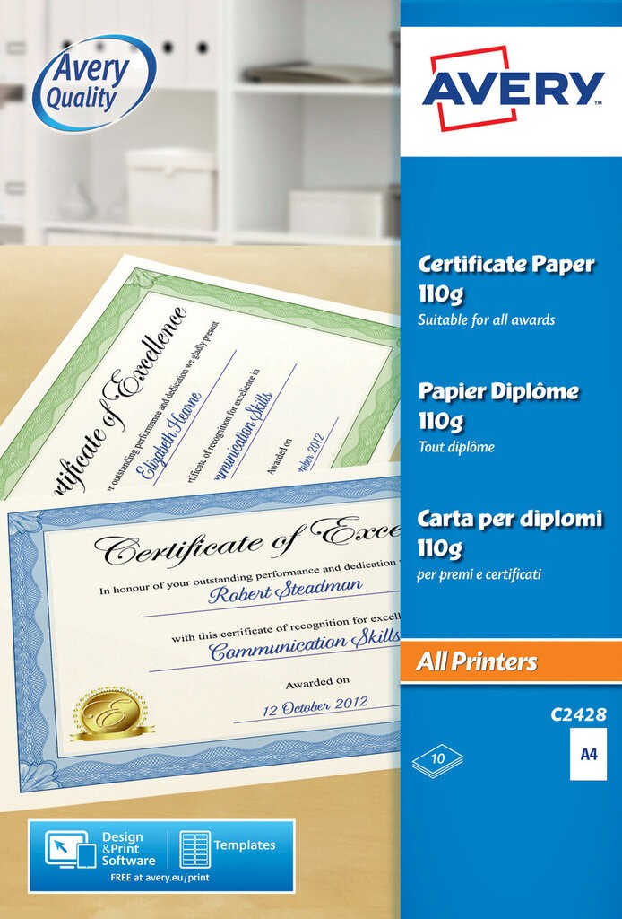 Avery certificate paper is great for designing and printing your own awards. The presence of different chemicals in labelling materials is a key issue for both producers and end users. Avery dennison is committed to provide clear accurate and up to date information on product compositions and characteristics as well as on wider issues such as sustainability and segment specific information.
