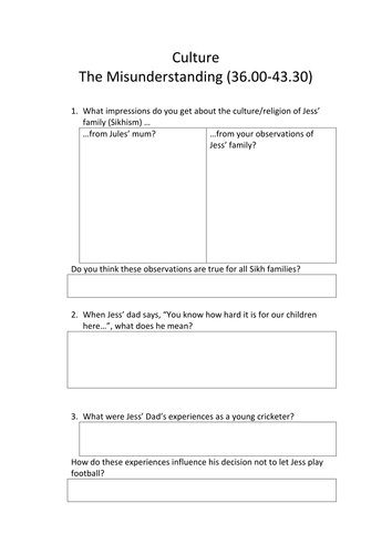 Bend It Like Beckham Worksheets