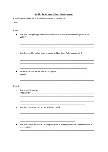 Bend It Like Beckham Worksheets Teaching Resources Tpt