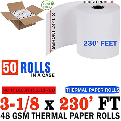 3 1 8 X 230 Thermal Paper 50 Rolls Case Premium Bpa Free 10 More Paper Buyregisterrolls