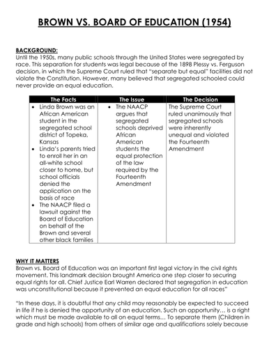Brown V Board Of Education Activity Worksheets Tpt