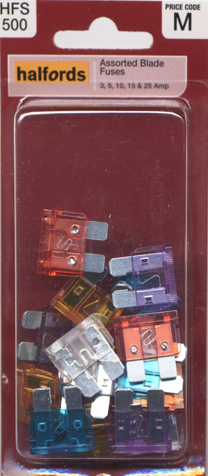 Halfords Assorted Blade Fuses 3 5 10 15 25 Amp Hfs500