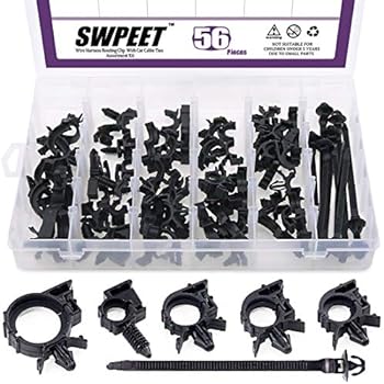 Swpeet 56pcs Wire Harness Routing Clip Assortment With Car Cable Ties Kit 5 Different Sizes Universal Retainer Car Clips Contains Replacement Parts