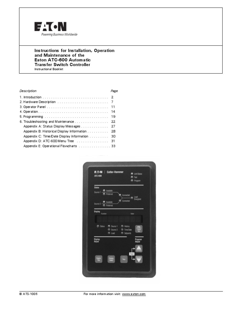 O M Manual For The Eaton Atc 100 Automatic Transfer Switch