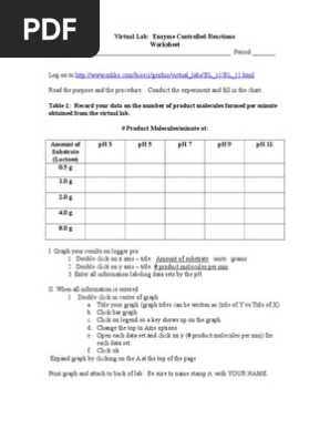 Enzyme And Ph Simulation Worksheet 1 Enzyme Chemical