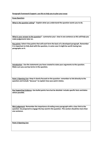 This means that the preparation and research of an essay are as important if not more so than the actual writing. It is a basic outline of your essay and is useful if you want to discuss your writing with your lecturer tutor or with an academic support person. Use a template plan. The ability to write a good essay begins with careful and efficient planning.