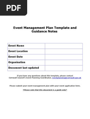 In this guide well walk you through what event planning is what it involves and how to write an event plan step by step with a checklist to help you along the way. This template provides guidance notes for event organisers and will help you develop a detailed event management plan. Not all sections will apply to all events you will need to decide which are relevant to your event. Event plan planning is the most important part of running a successful event and this means starting well in advance.