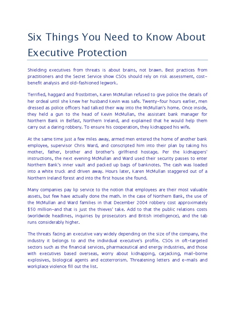 From the oce of vice chancellor for facilities college police. Arriving executive at the airport uses an armored limousine there are usually one or two reasons. So you want to write a corporate executive protection strategy and youre looking for a template. The first step in hiring an executive protection firm is a risk assessment.