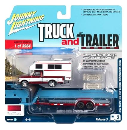 1993 Ford F 150 Red W White Camper Trailer 1 64 Model Johnny Lightning Jlsp036a Karson Diecast