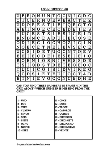 Spanish Numbers Numeros 1 100 Word Search Puzzle