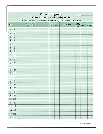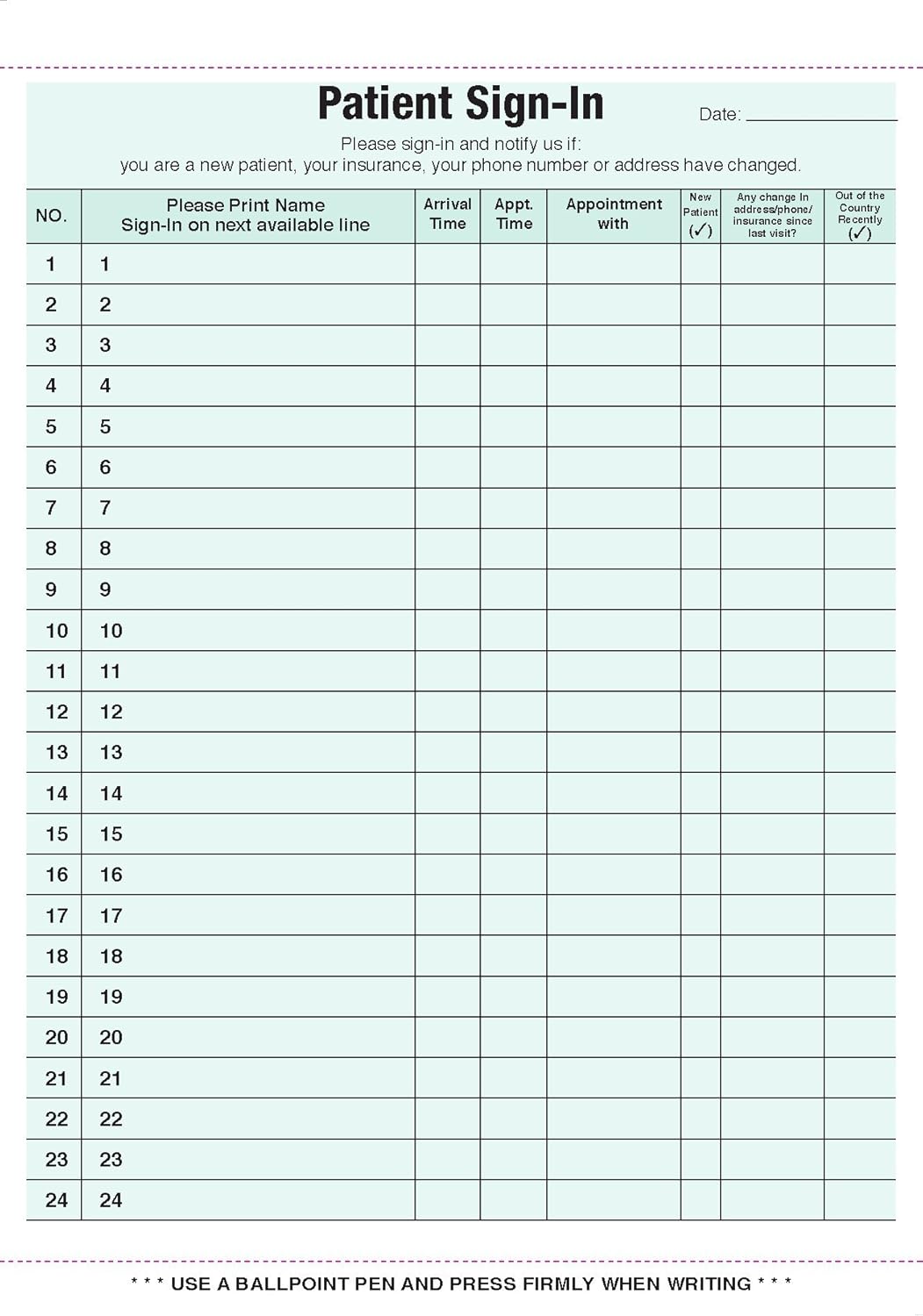 Amazon Com Patient Sign In Sheets 8 1 2 X 11 Blue