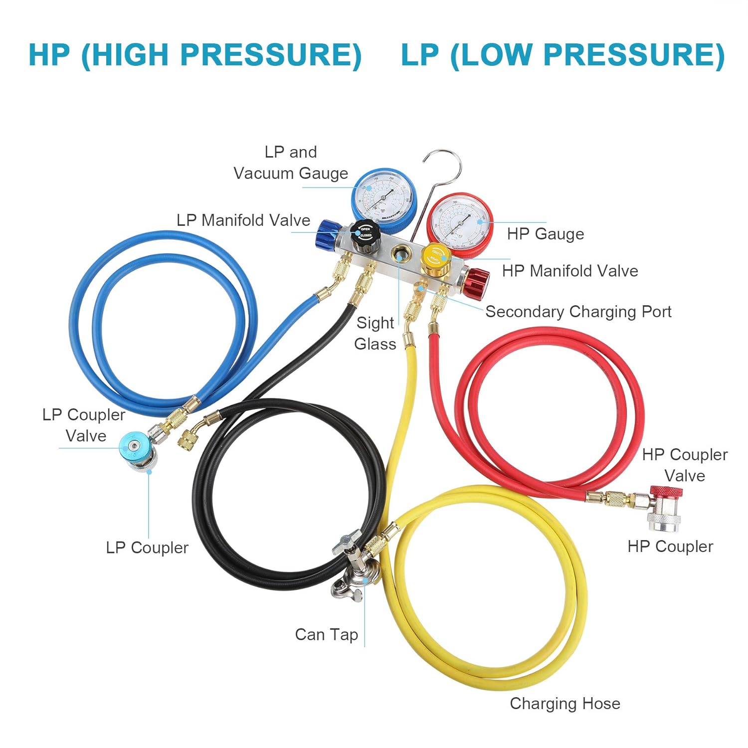 Details About 4 Way Ac Diagnostic Manifold Gauge Set For Freon Charging And Vacuum Pump