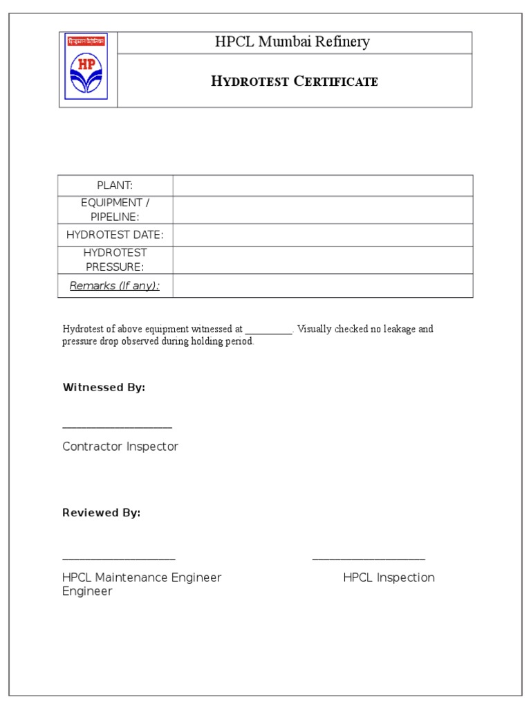 Hydrostatic testing certification. Dot cylinder maintenance retest and certification requirements visual inspection and hydrostatic testing of cylinders. Hydrostatic hydro testing is a process where components such as piping systems gas cylinders boilers and pressure vessels are tested for strength and leaks. Test standards modifications of sprinkler systems in excess of 20 heads shall be tested to hydrostatic pressure of 200 psi for one hour. Sprinkler head cannot be used as connection point for hydrostatic test.