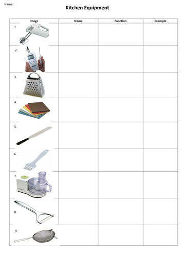 Kitchen Worksheets Make One That Shows Equipment To Do