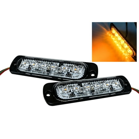 1 Pair 4 Amber 6 Led Surface Mount Warning Strobe Light
