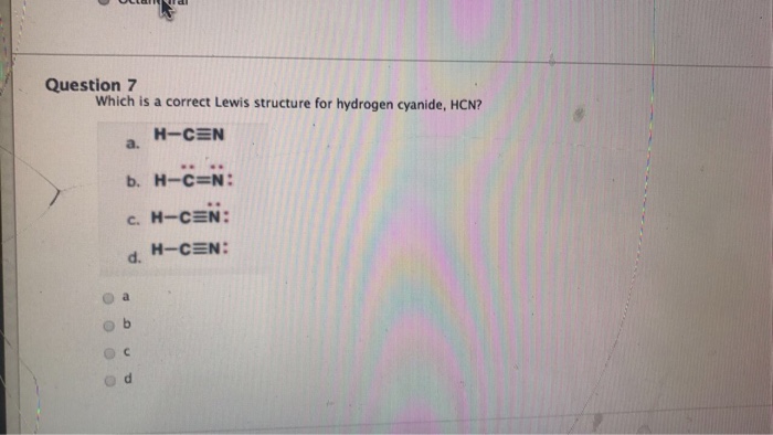 Place the carbon atom in the center and triple bond it to a nitrogen atom. The most dangerous cyanides are hydrogen cyanide hcn and salts derived from it such as potassium cyanide kcn and sodium cyanide nacn among others. It should be called like h single bond c triple bond n with a lone pair of electrons sitting on the end.