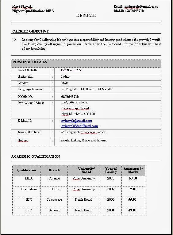 Mba Finance Fresher Resume Template 2 Resume Format For