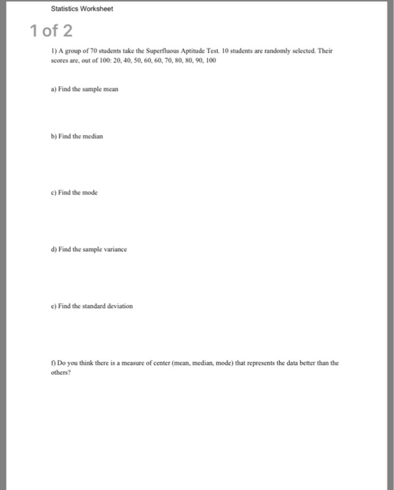 Measure Of Center Statistics Worksheet With Key 11 5 Part