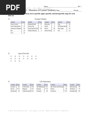 Pdf 8 1 Measures Of Central Tendency Worksheet Kuta