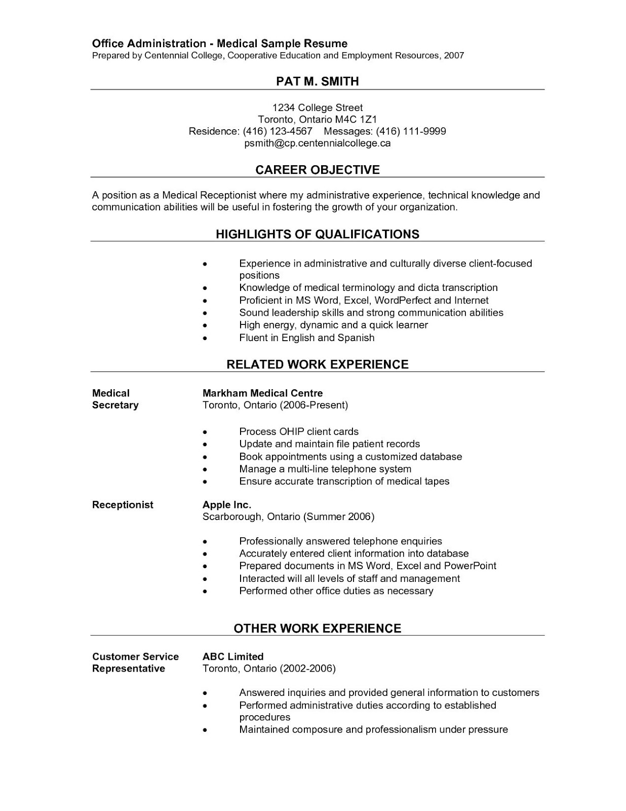 Fillable Online Sample Medical Office Manager Resume Sample