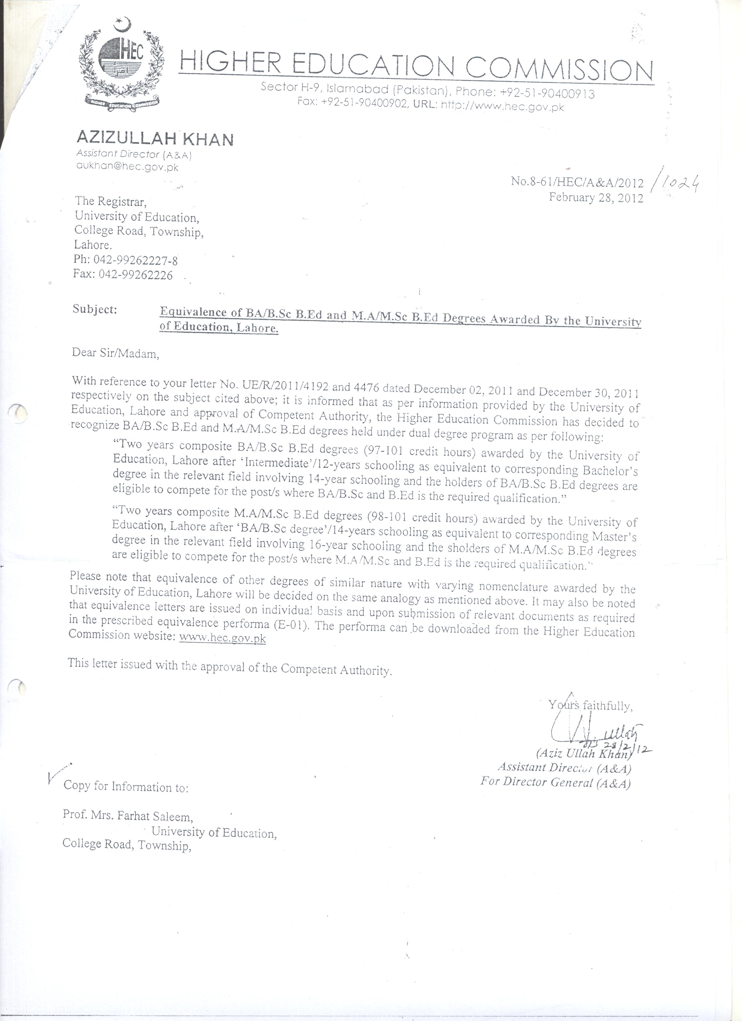 Pak Hec Equivalence Form E 01 Academic Degree Diploma