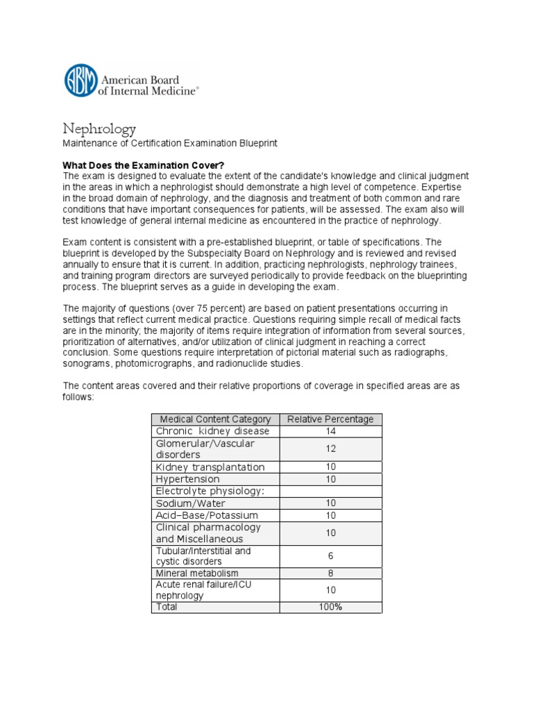 Review in practice mode or test mode. Brcu maximizes participants readiness for the abim nephrology board certification and maintenance of certification moc examinations as well as provides a timely comprehensive and thorough update for the practicing nephrologist. Eligibility criteria for certification in pediatric nephrology the american board of pediatrics abp has established a procedure for certification in pediatric nephrology. Questions on software platform that give you real abim renal board exam experience.