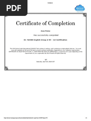 Preparing to install your digital certificate nihss nihss e nihss pdf nihss cert c nihss answer key nihss group c nihss answers nihss answer nihss certification nihss certification c nihss b v3 answers. Certification with this test group is good for up to 24 months from. Attempt history hernandez delmy 01 nihssenglish group av3 1st certification date result 332018 41238 am passed 89 of 90 9889 view responses patient 1 topic question answer grade level of consciousness 1a. Stroke scale certification group a patient 1 department of health and human services national institute of neurological disorders and stroke.