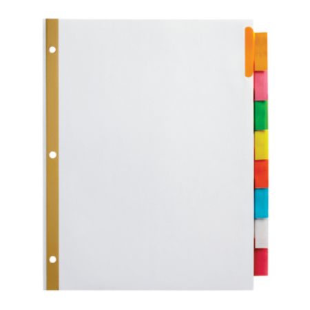 Table of contents dividers will often leave space on the first divider to write in or print the contents of the binder. 8 insertable tab dividers at office depot officemax. 574817 big tab insert 8 tab. Pens and laptop computers to help your student excel.