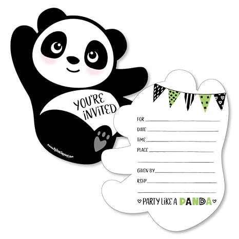 Party Like A Panda Bear Shaped Fill In Invitations Baby Shower Or Birthday Party Invitation Cards With Envelopes Set Of 12