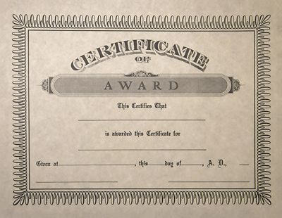 8 1 2 X 11 Certificates Award