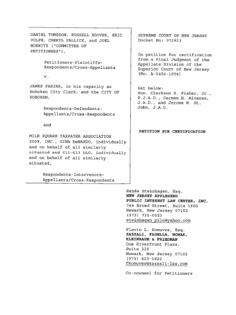 The petition for certification is a formal brief or a letter brief four copies of which must be filed with the clerks office within thirty days of the filing date of the decision of the appellate division. 2 the address of the establishment involved. Therefore langs certification is not germane to this petition. 151 et seq.