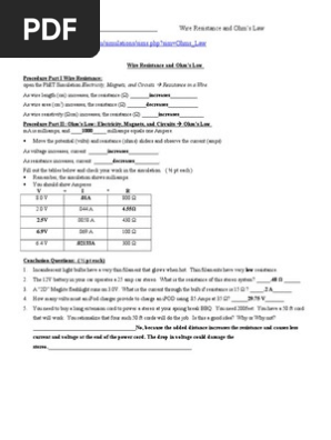 Wire Resistance And Ohm S Law Lab 18 Name Wire