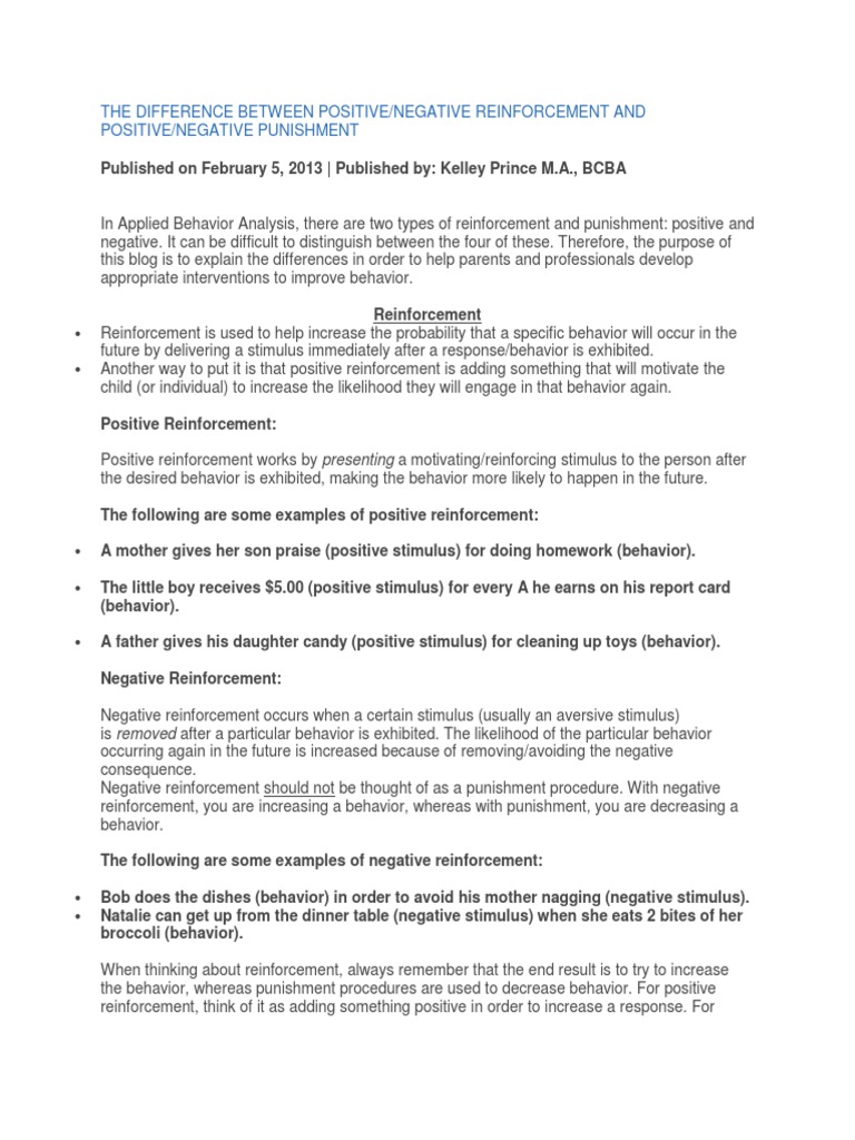 Positive Vs Negative Reinforcement Docx Punishments Scribd