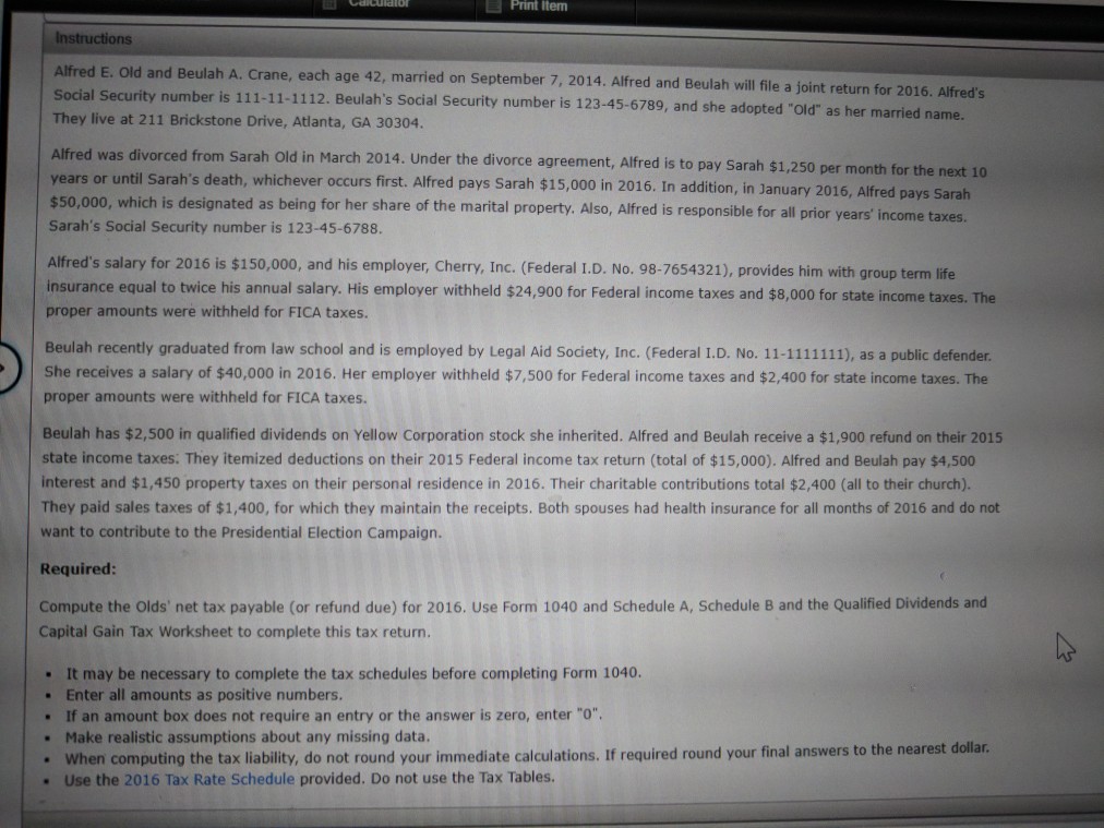 Solved Complete For 1040 Schedule A Schedule B 2016 Qu