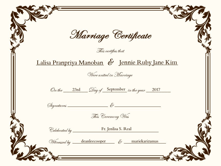 Free printable marriage certificates description. If you want to commemorate your marriage to your spouse with a fancy marriage certificate why not make our own customized marriage certificate. What real id means to you. This certificate can make a great personal replacement for safekeeping a gift or novelty depending on how its used.
