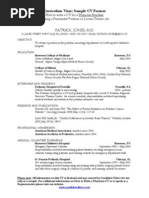Medical Cv Sample Post Residency Residency Medicine