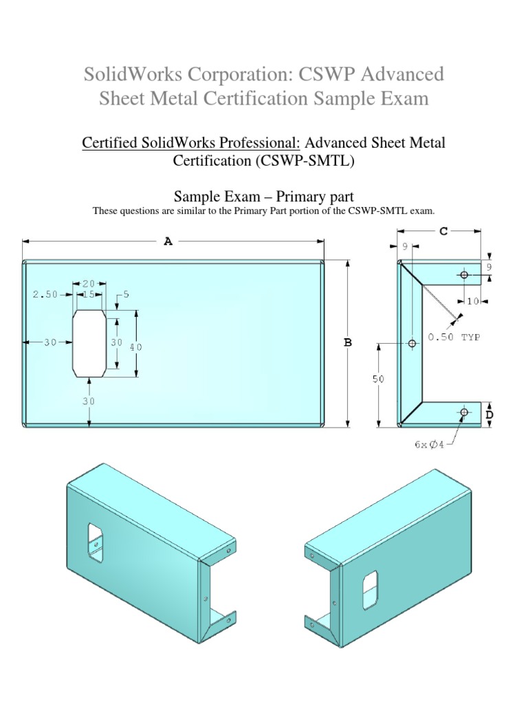 Fmas psmo certification is the metal fabricating industrys only comprehensive exam designed to assess a candidates knowledge of critical precision sheet metal operations. The completion of the certified solidworks professional advanced sheet metal cswpa sm exam shows that you have successfully demonstrated your ability to use solidworks sheet metal tools. Employers can be confident that an individual with this certification understands the set of solidworks tools that aid in the design of sheet metal components. Welcome to sheet metal workers local 38 web site.