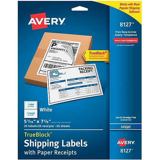 Free 2 day shipping on qualified orders over 35. Jam free and smudge free labels are compatible with inkjet printers. Otherwise i love these labels because they suit my needs provide me with a receipt section for ebay sales and item information and the actual shipping label is perfect for printing out the shipping label. Avery 8127 inkjet shipping label with paper receipt comes in white color is smudge free and jam free for perfect labels every time sold as 25 per box.