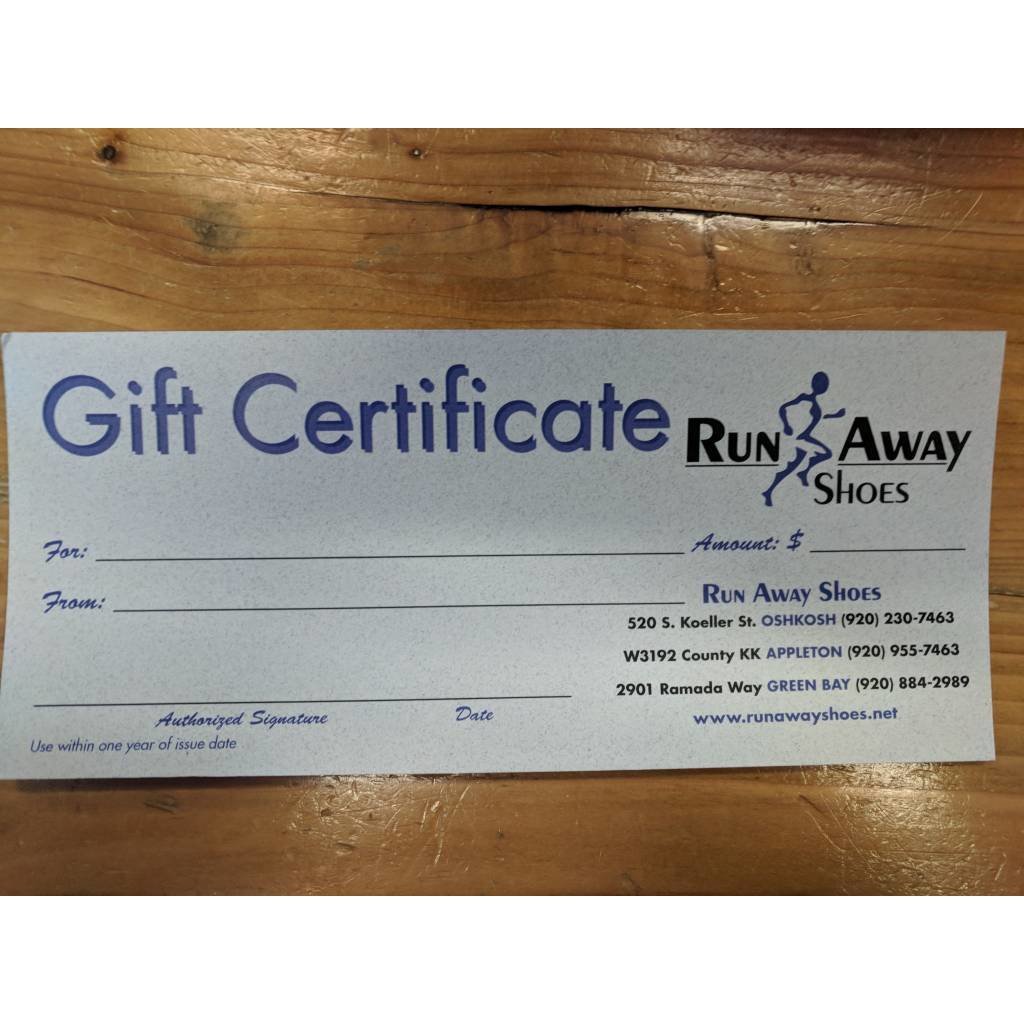 Shoe gift certificate. Send to anyone via email or print in real time. You can purchase a certificate of any amount you may want to add some products to the shopping cart to estimate the total price and well email the gift certificate to you or the lucky recipient. Earn rewards for shopping. Check out how it works.
