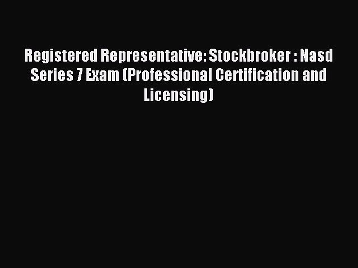 Read Registered Representative Stockbroker Nasd Series 7 Exam Professional Certification