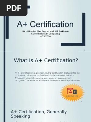 Tia a certification. A a plus is an entry level computer certification for pc computer service technicians. It validates understanding of the most common hardware and software technologies in business and certifies the skills necessary to support complex it infrastructures. Score reports a list of all responses with percentage score are displayed upon completion of each practice exam. The exam is designed to certify the competency of entry level pc computer service professionals in installing maintaining customizing and operating personal computers.