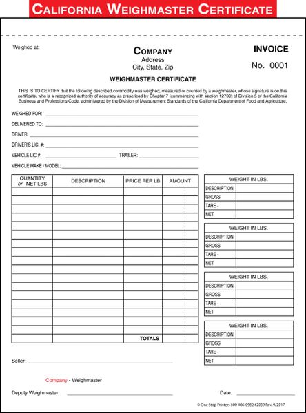 California Weighmaster Certificate For Multiple Locations 2029