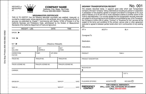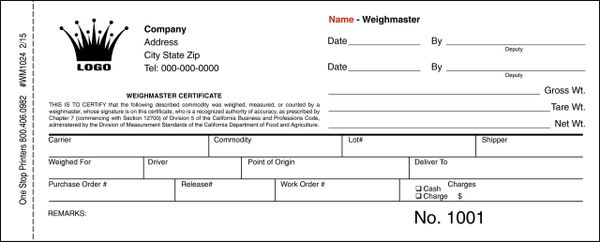 Scale Tickets California Weighmaster Certificate Wc 4 Numbered